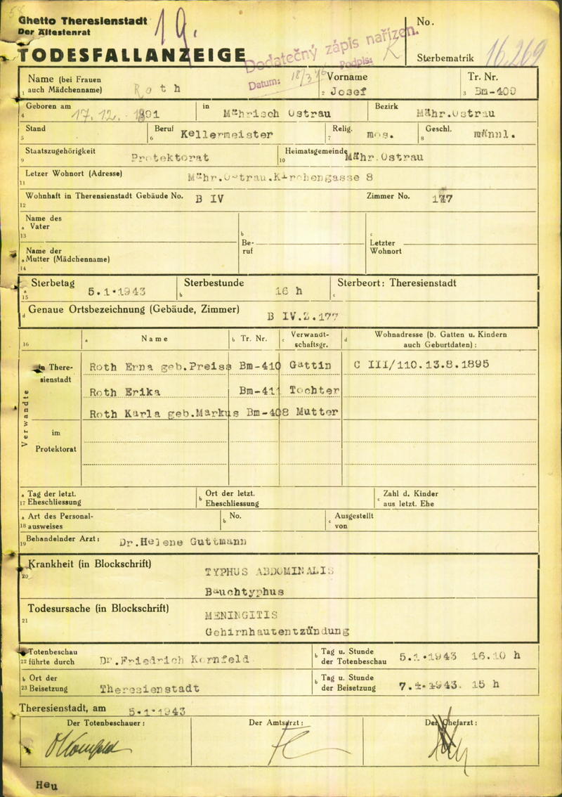 This database contains the names and fates of those who were deported from the territory of today’s Czech Republic, be it their homeland or may they have been deported to the Theresienstadt ghetto before from different european countries. Further, it contains basic information on those men, women and children, most of whom were Roma or Sinti, who died as prisoners of the so-called „Gypsy camp I“ Lety u Písku.