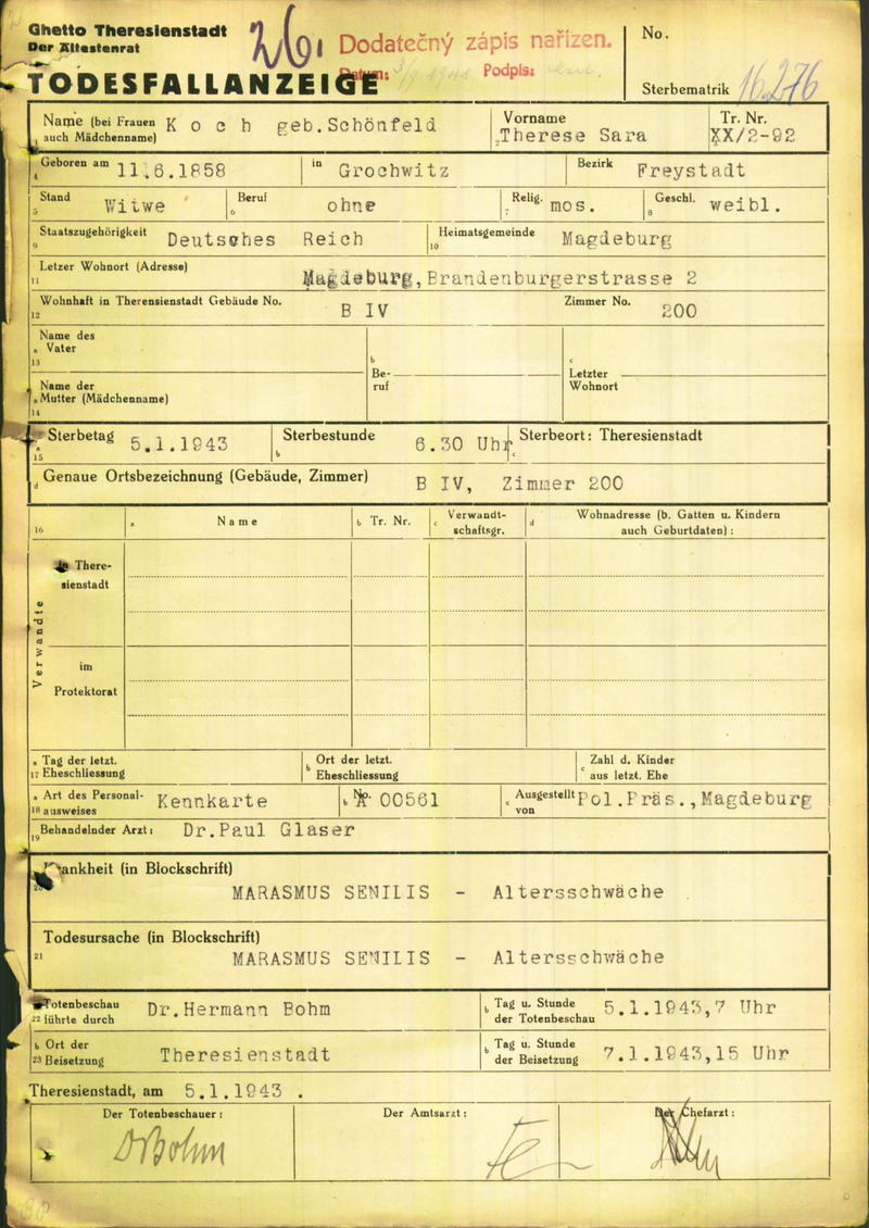 This database contains the names and fates of those who were deported from the territory of today’s Czech Republic, be it their homeland or may they have been deported to the Theresienstadt ghetto before from different european countries. Further, it contains basic information on those men, women and children, most of whom were Roma or Sinti, who died as prisoners of the so-called „Gypsy camp I“ Lety u Písku.