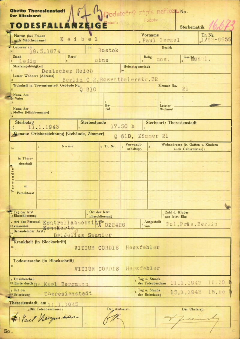 Keibel Paul: Death certificate, Ghetto Terezín