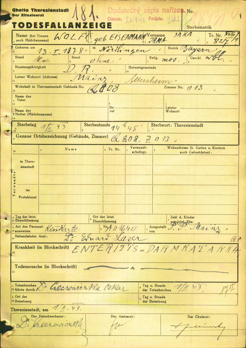 This database contains the names and fates of those who were deported from the territory of today’s Czech Republic, be it their homeland or may they have been deported to the Theresienstadt ghetto before from different european countries. Further, it contains basic information on those men, women and children, most of whom were Roma or Sinti, who died as prisoners of the so-called „Gypsy camp I“ Lety u Písku.