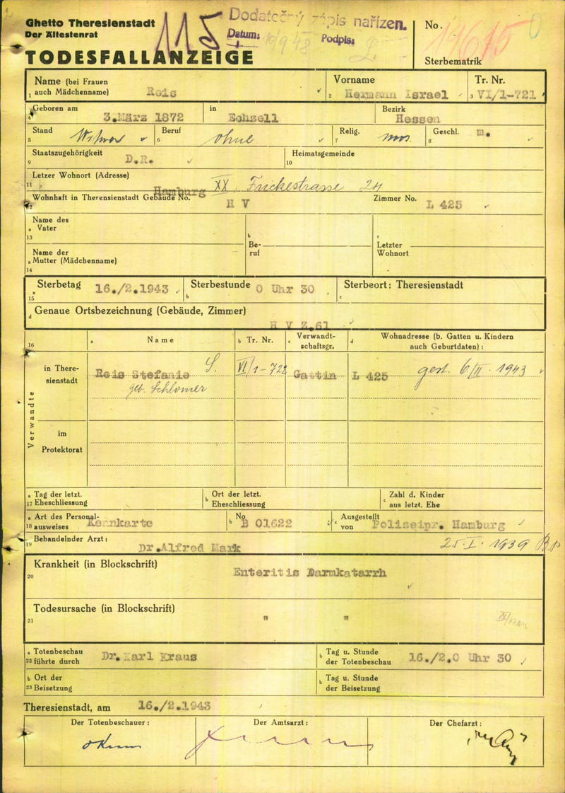 This database contains the names and fates of those who were deported from the territory of today’s Czech Republic, be it their homeland or may they have been deported to the Theresienstadt ghetto before from different european countries. Further, it contains basic information on those men, women and children, most of whom were Roma or Sinti, who died as prisoners of the so-called „Gypsy camp I“ Lety u Písku.