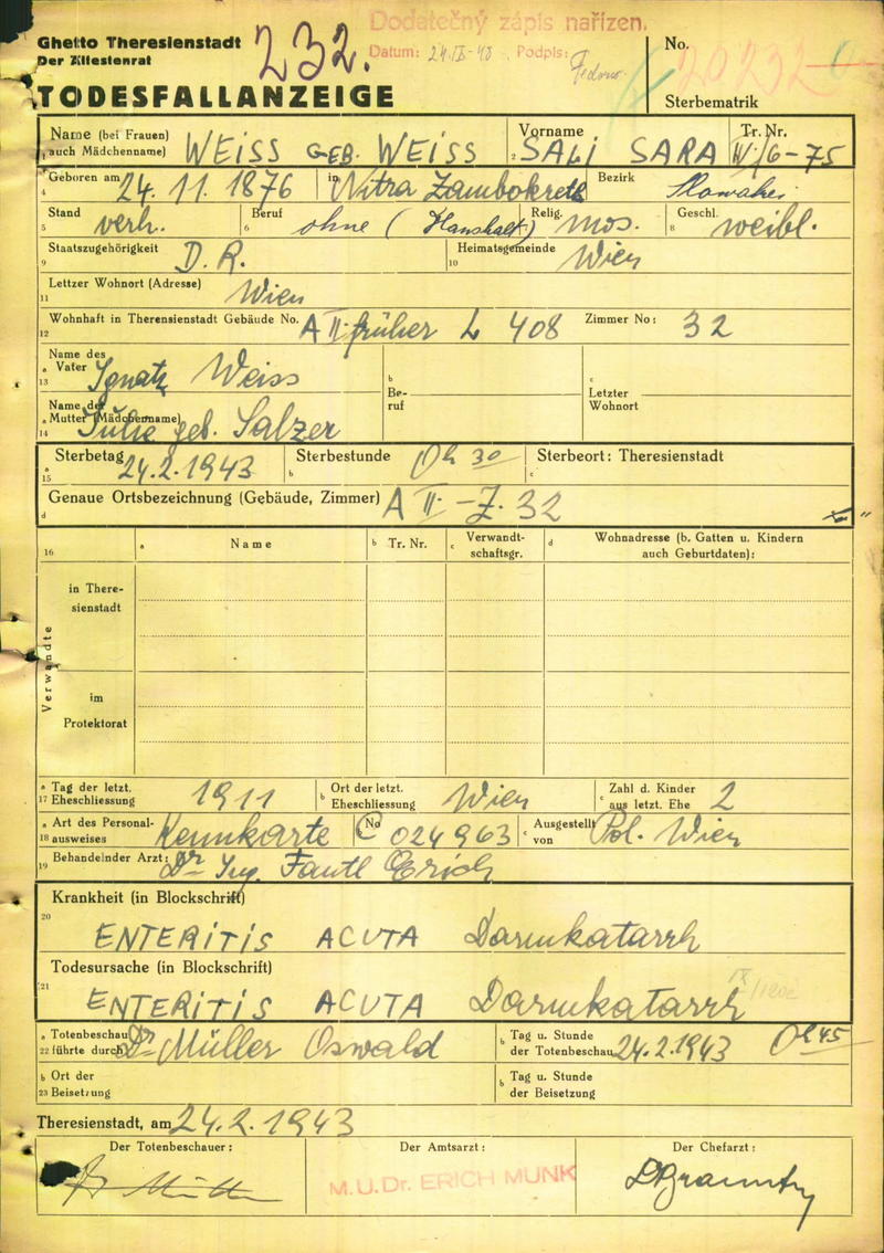 This database contains the names and fates of those who were deported from the territory of today’s Czech Republic, be it their homeland or may they have been deported to the Theresienstadt ghetto before from different european countries. Further, it contains basic information on those men, women and children, most of whom were Roma or Sinti, who died as prisoners of the so-called „Gypsy camp I“ Lety u Písku.