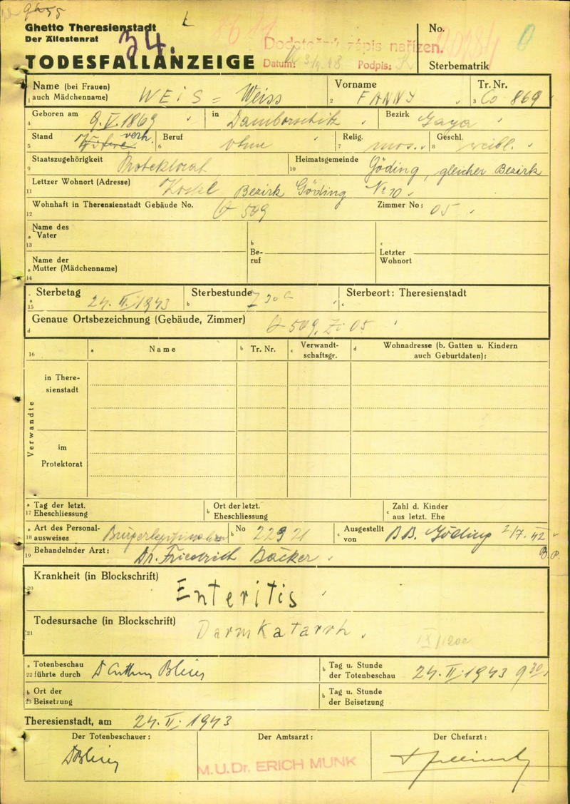 National archives Prague > Židovské matriky > Ohledací listy - ghetto Terezín > Svazek 82