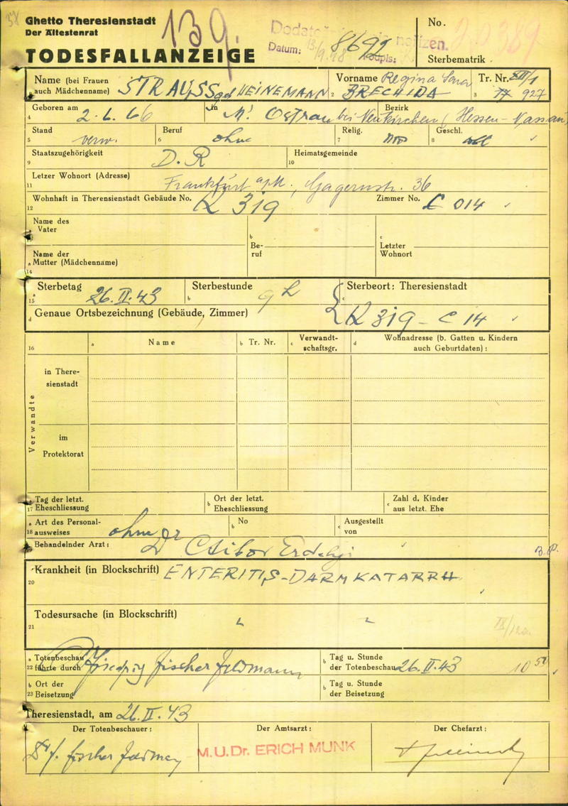This database contains the names and fates of those who were deported from the territory of today’s Czech Republic, be it their homeland or may they have been deported to the Theresienstadt ghetto before from different european countries. Further, it contains basic information on those men, women and children, most of whom were Roma or Sinti, who died as prisoners of the so-called „Gypsy camp I“ Lety u Písku.