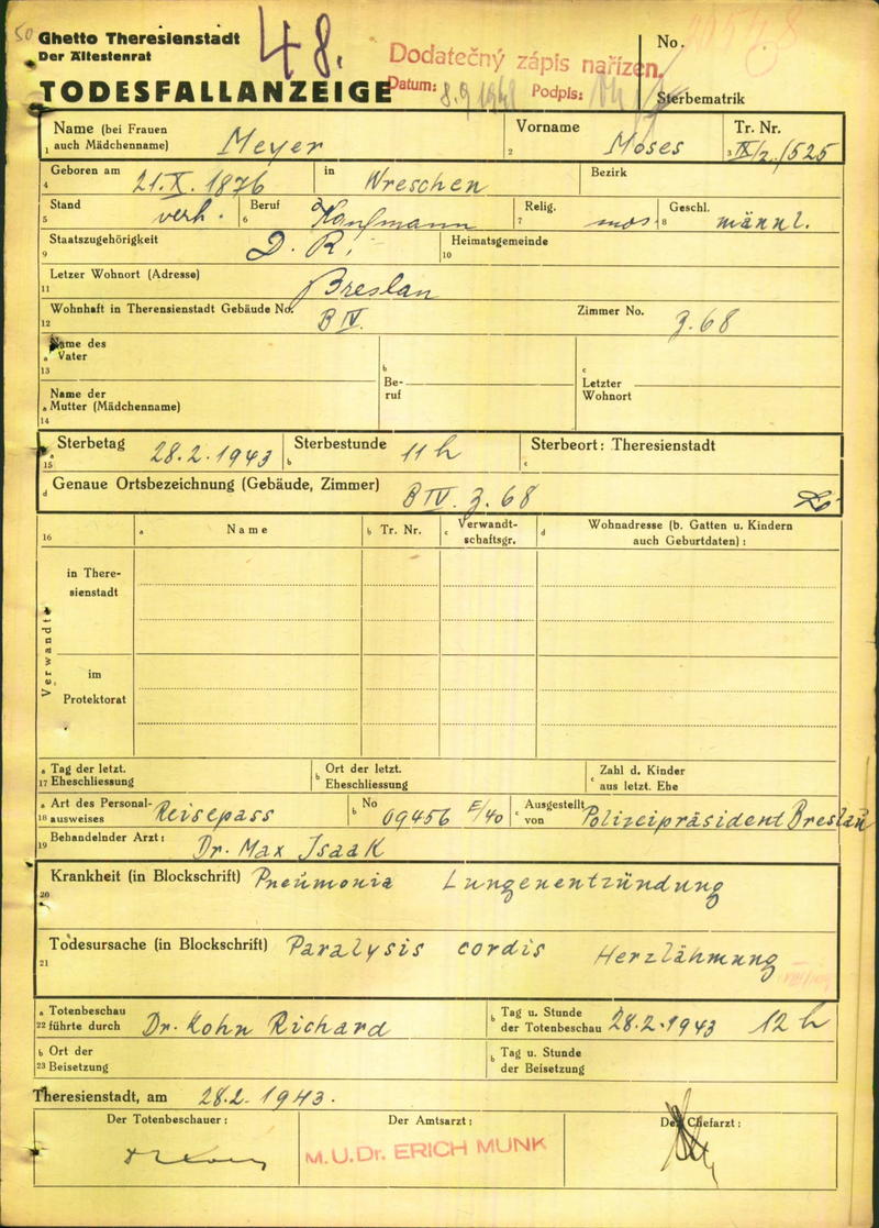 This database contains the names and fates of those who were deported from the territory of today’s Czech Republic, be it their homeland or may they have been deported to the Theresienstadt ghetto before from different european countries. Further, it contains basic information on those men, women and children, most of whom were Roma or Sinti, who died as prisoners of the so-called „Gypsy camp I“ Lety u Písku.