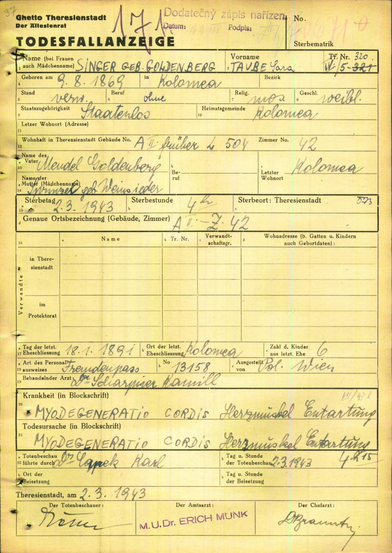 This database contains the names and fates of those who were deported from the territory of today’s Czech Republic, be it their homeland or may they have been deported to the Theresienstadt ghetto before from different european countries. Further, it contains basic information on those men, women and children, most of whom were Roma or Sinti, who died as prisoners of the so-called „Gypsy camp I“ Lety u Písku.