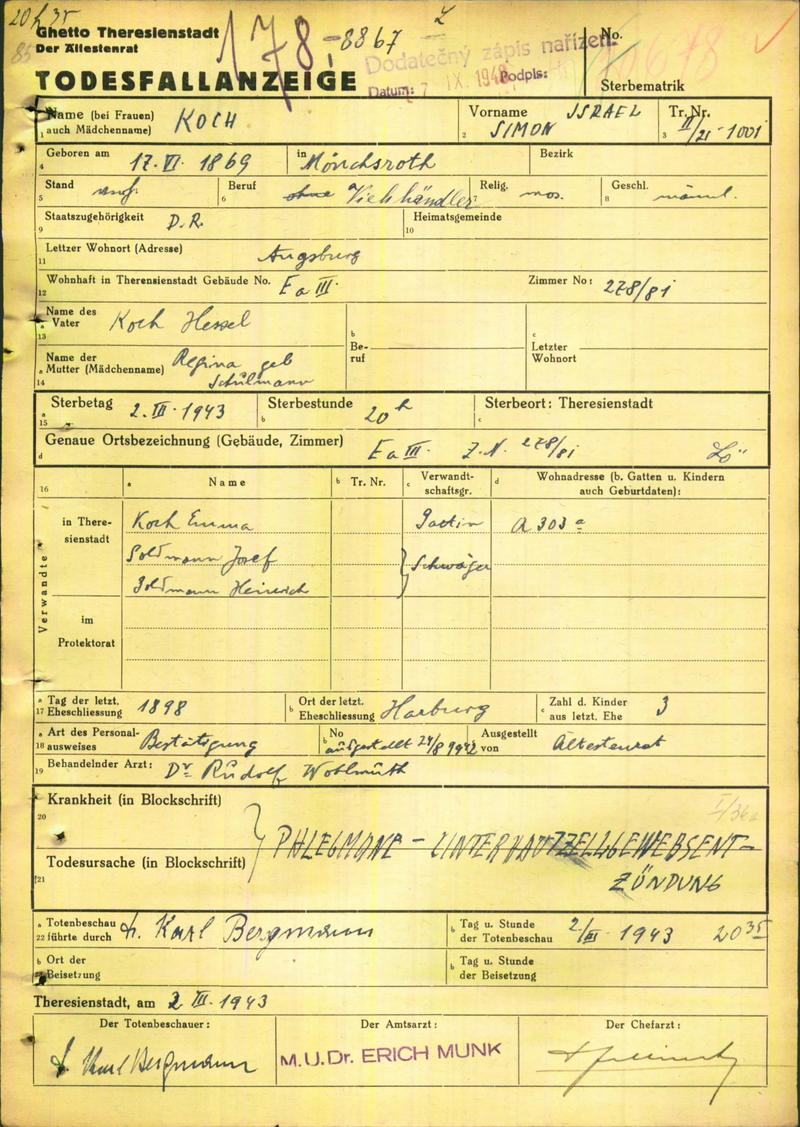 This database contains the names and fates of those who were deported from the territory of today’s Czech Republic, be it their homeland or may they have been deported to the Theresienstadt ghetto before from different european countries. Further, it contains basic information on those men, women and children, most of whom were Roma or Sinti, who died as prisoners of the so-called „Gypsy camp I“ Lety u Písku.