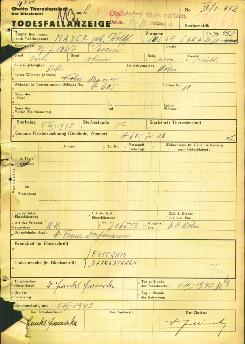 This database contains the names and fates of those who were deported from the territory of today’s Czech Republic, be it their homeland or may they have been deported to the Theresienstadt ghetto before from different european countries. Further, it contains basic information on those men, women and children, most of whom were Roma or Sinti, who died as prisoners of the so-called „Gypsy camp I“ Lety u Písku.
