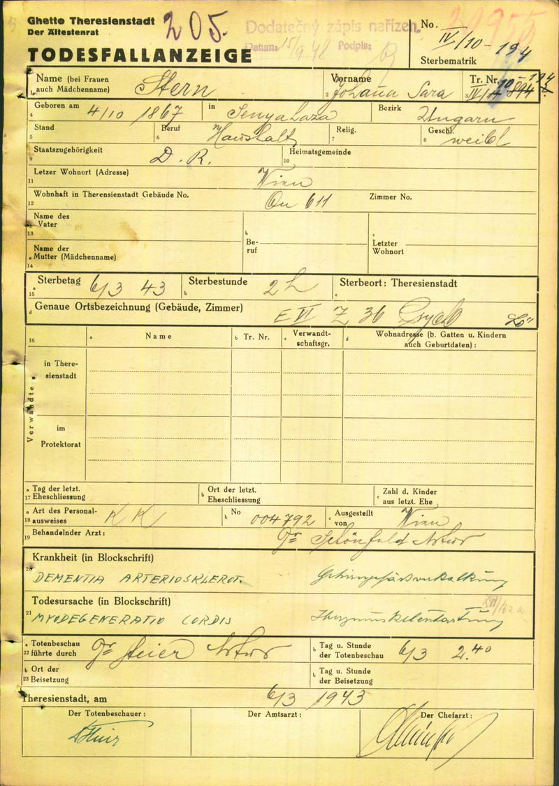 National archives Prague > Židovské matriky > Ohledací listy - ghetto Terezín > Svazek 84