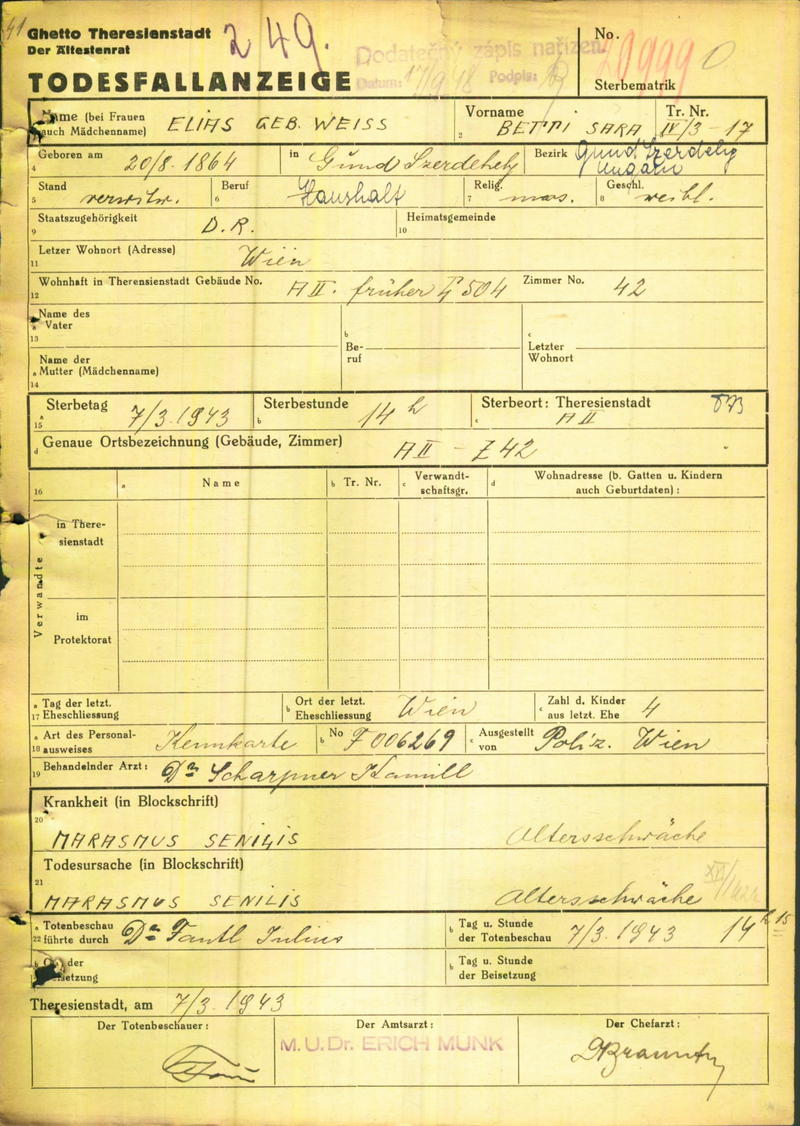 This database contains the names and fates of those who were deported from the territory of today’s Czech Republic, be it their homeland or may they have been deported to the Theresienstadt ghetto before from different european countries. Further, it contains basic information on those men, women and children, most of whom were Roma or Sinti, who died as prisoners of the so-called „Gypsy camp I“ Lety u Písku.