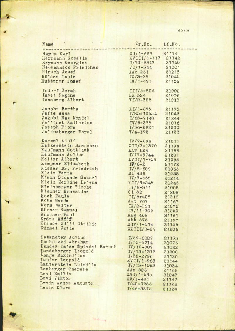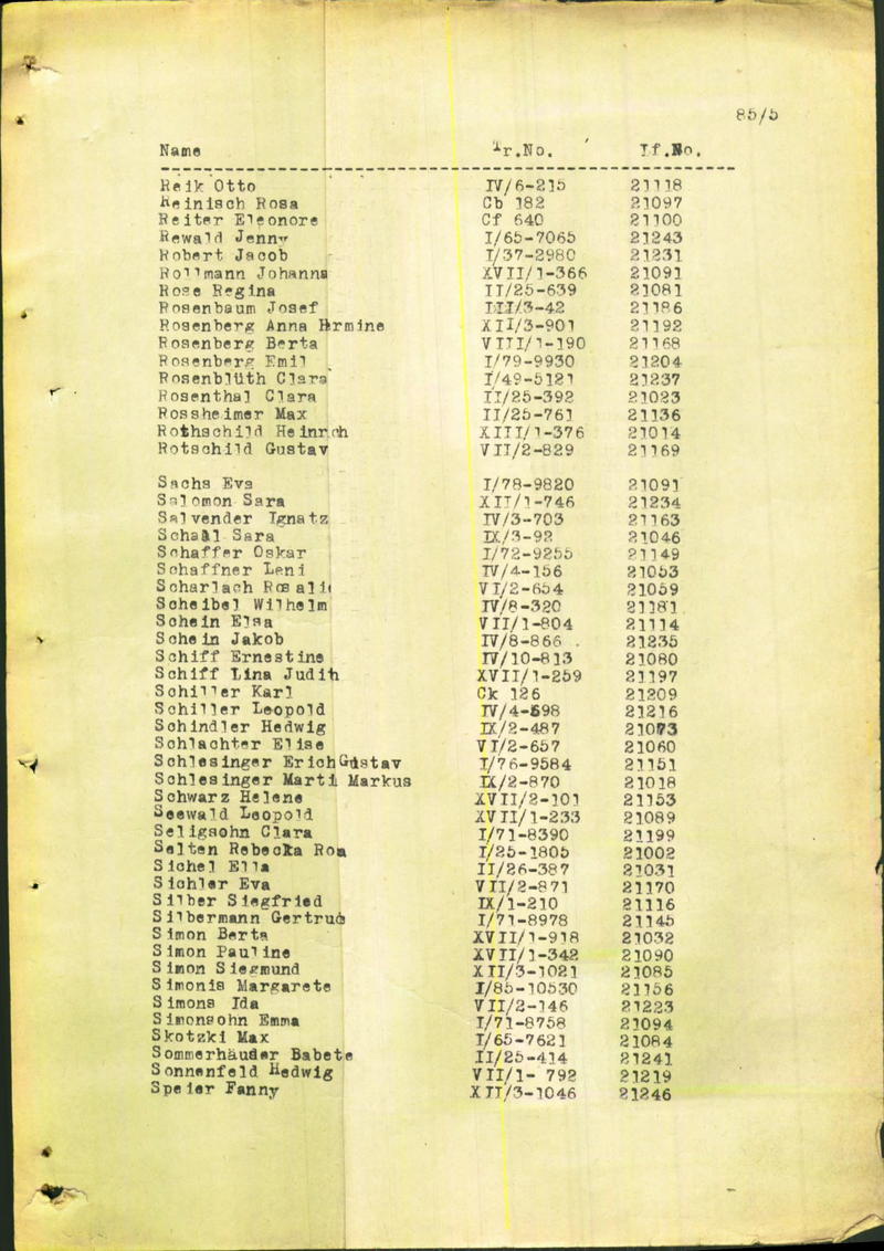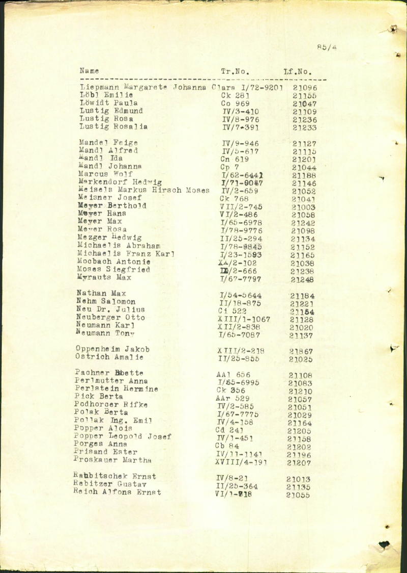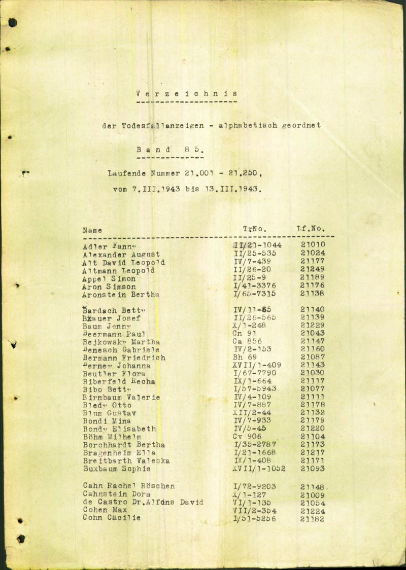 National archives Prague > Židovské matriky > Ohledací listy - ghetto Terezín > Svazek 85