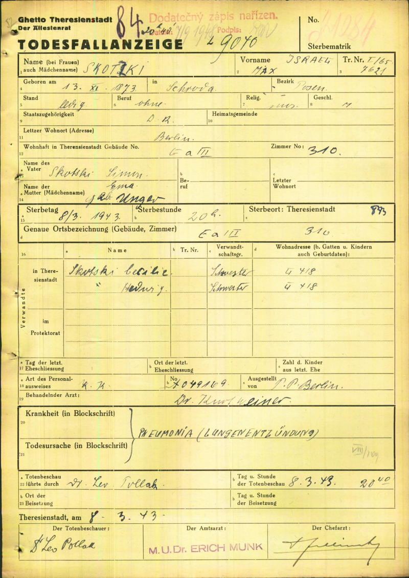 This database contains the names and fates of those who were deported from the territory of today’s Czech Republic, be it their homeland or may they have been deported to the Theresienstadt ghetto before from different european countries. Further, it contains basic information on those men, women and children, most of whom were Roma or Sinti, who died as prisoners of the so-called „Gypsy camp I“ Lety u Písku.