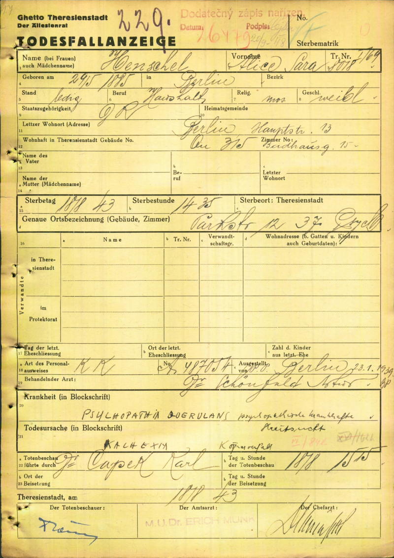 This database contains the names and fates of those who were deported from the territory of today’s Czech Republic, be it their homeland or may they have been deported to the Theresienstadt ghetto before from different european countries. Further, it contains basic information on those men, women and children, most of whom were Roma or Sinti, who died as prisoners of the so-called „Gypsy camp I“ Lety u Písku.
