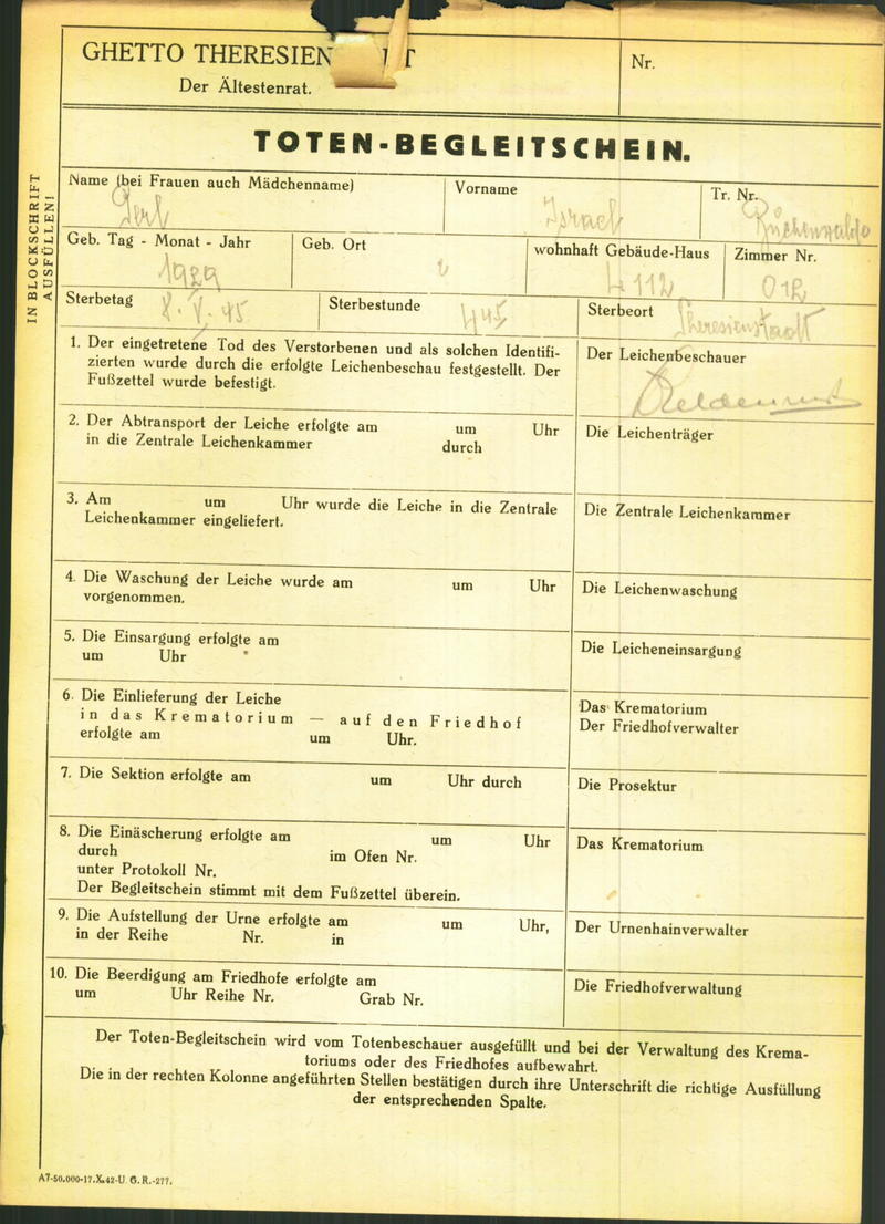 This database contains the names and fates of those who were deported from the territory of today’s Czech Republic, be it their homeland or may they have been deported to the Theresienstadt ghetto before from different european countries. Further, it contains basic information on those men, women and children, most of whom were Roma or Sinti, who died as prisoners of the so-called „Gypsy camp I“ Lety u Písku.