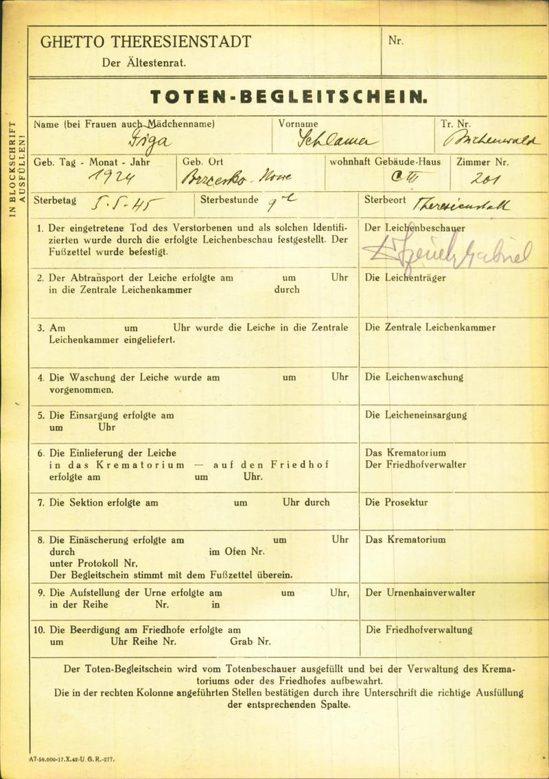 This database contains the names and fates of those who were deported from the territory of today’s Czech Republic, be it their homeland or may they have been deported to the Theresienstadt ghetto before from different european countries. Further, it contains basic information on those men, women and children, most of whom were Roma or Sinti, who died as prisoners of the so-called „Gypsy camp I“ Lety u Písku.