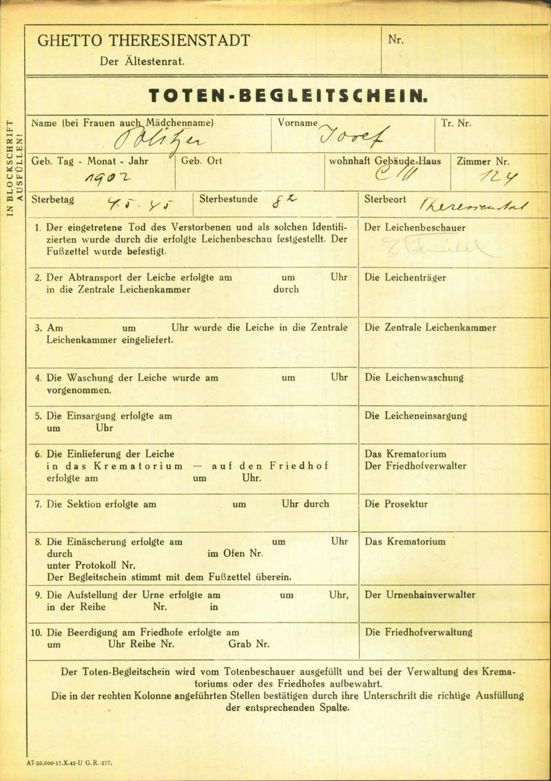 This database contains the names and fates of those who were deported from the territory of today’s Czech Republic, be it their homeland or may they have been deported to the Theresienstadt ghetto before from different european countries. Further, it contains basic information on those men, women and children, most of whom were Roma or Sinti, who died as prisoners of the so-called „Gypsy camp I“ Lety u Písku.