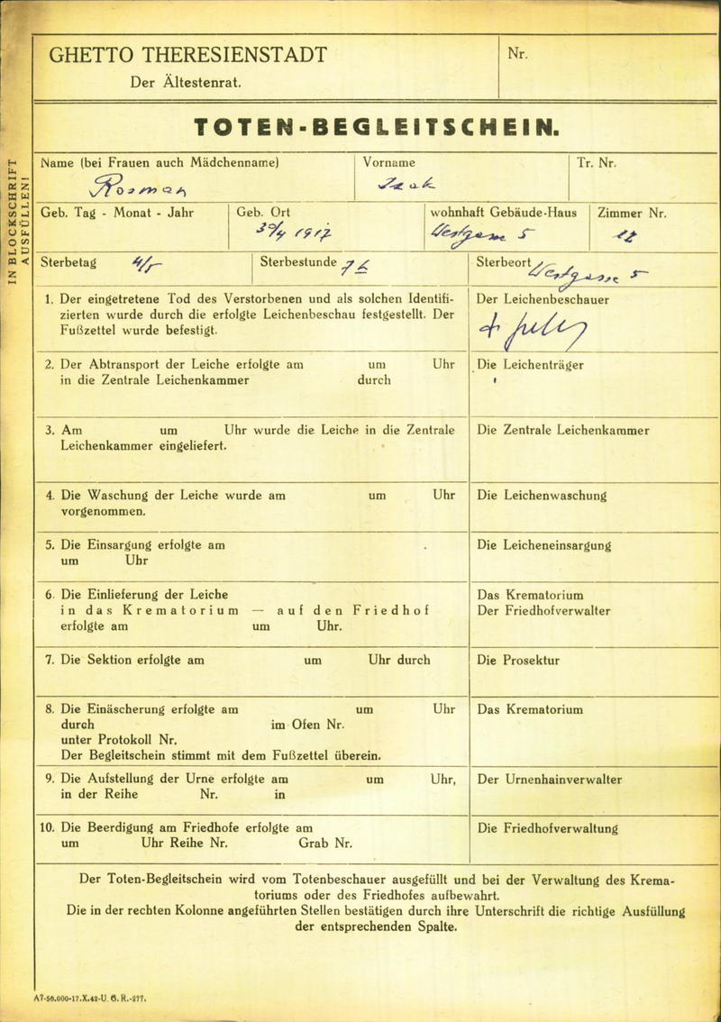 This database contains the names and fates of those who were deported from the territory of today’s Czech Republic, be it their homeland or may they have been deported to the Theresienstadt ghetto before from different european countries. Further, it contains basic information on those men, women and children, most of whom were Roma or Sinti, who died as prisoners of the so-called „Gypsy camp I“ Lety u Písku.