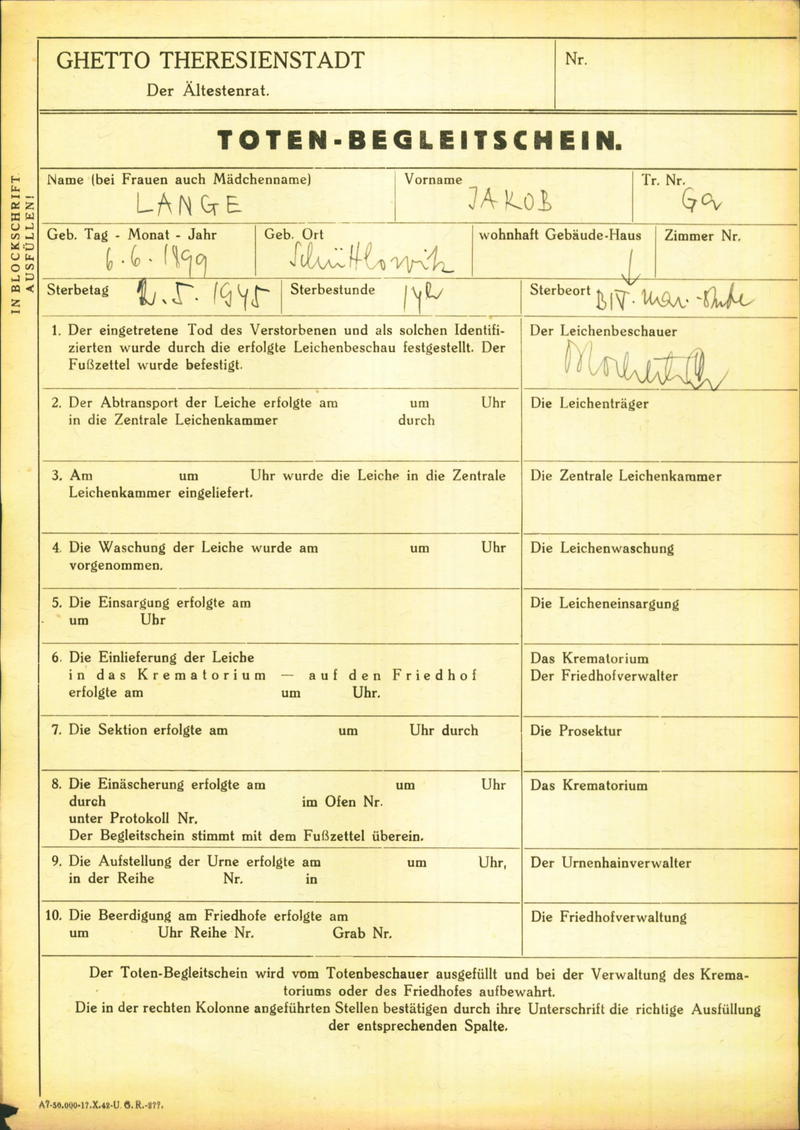 This database contains the names and fates of those who were deported from the territory of today’s Czech Republic, be it their homeland or may they have been deported to the Theresienstadt ghetto before from different european countries. Further, it contains basic information on those men, women and children, most of whom were Roma or Sinti, who died as prisoners of the so-called „Gypsy camp I“ Lety u Písku.
