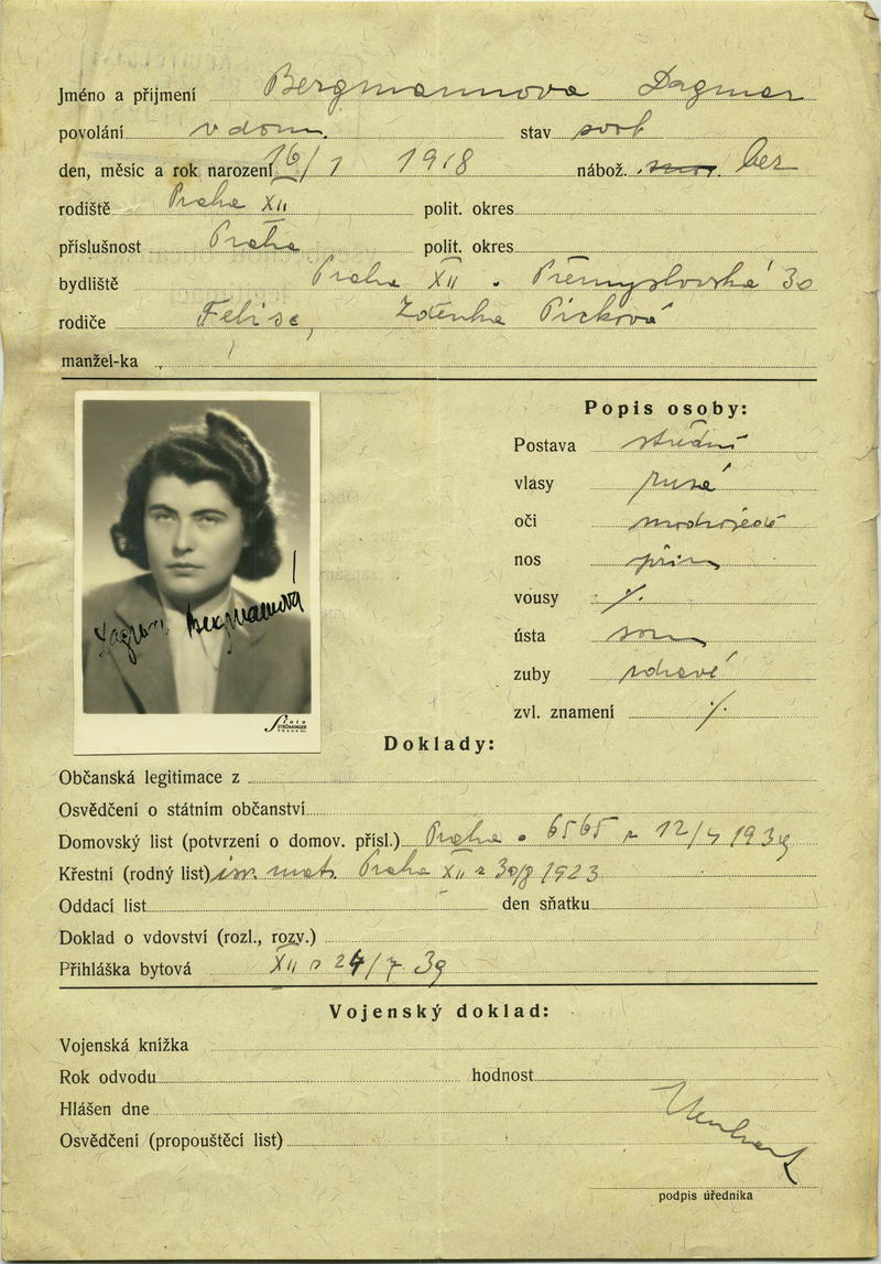 National archives Prague > Police Directorate Prague > 1931-1940 > B > Bergmannová Dagmar