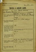 Born 07. 08. 1883 Last residence before deportation: Prague IX Address/place of registration in the Protectorate: Prague IX, Šestajovická 12 Transport Bf, no. 866 (08. 09. 1942, Prague -> Terezín) Transport Bu, no. 543 (08. 10. 1942, Terezín -> Treblinka) Murdered