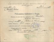 Born 20. 11. 1881 Last residence before deportation: Prague II Address/place of registration in the Protectorate: Prague I, Valentinská 9 Transport Am, no. 760 (24. 04. 1942, Prague -> Terezín) Transport Aq, no. 271 (27. 04. 1942, Terezín -> Izbica) Murdered