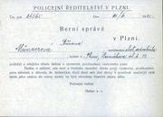 Born 10. 02. 1898 Last residence before deportation: Pilsen Address/place of registration in the Protectorate: Pilsen Transport Ca, no. 169 (24. 10. 1942, Prague -> Terezín) Transport Cu, no. 111 (01. 02. 1943, Terezín -> Auschwitz) Murdered
