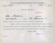 Born 06. 01. 1892 Last residence before deportation: Pilsen Address/place of registration in the Protectorate: Pilsen Transport T, no. 165 (26. 01. 1942, Pilsen -> Terezín) Transport Aa, no. 623 (11. 03. 1942, Terezín -> Izbica) Murdered