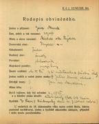 Born 31. 10. 1898 Last residence before deportation: Prague II Address/place of registration in the Protectorate: Prague X, Erbenova 6 Transport Di, no. 409 (13. 07. 1943, Prague -> Terezín) Transport Ek, no. 2447 (28. 09. 1944, Terezín -> Auschwitz) Murdered 20. 02. 1945 Dachau