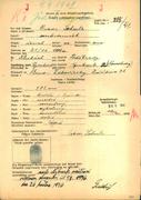 Born 21. 11. 1886 Last residence before deportation: Brno XVI Address/place of registration in the Protectorate: Brno Transport Ah, no. 34 (04. 04. 1942, Brno -> Terezín) Transport AAi, no. 820 (13. 06. 1942, Terezín -> unknown place) Murdered