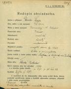 Born 05. 04. 1866 Last residence before deportation: Prague XI Address/place of registration in the Protectorate: Prague XI, Jeseniova 1269 Transport AAs, no. 319 (20. 07. 1942, Prague -> Terezín) Transport Bx, no. 1964 (22. 10. 1942, Terezín -> Treblinka) Murdered