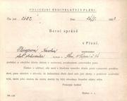 Born 28. 12. 1887 Last residence before deportation: Pilsen Address/place of registration in the Protectorate: Pilsen Transport T, no. 316 (26. 01. 1942, Pilsen -> Terezín) Transport Aa, no. 592 (11. 03. 1942, Terezín -> Izbica) Murdered