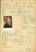 Born 10. 01. 1915 Last residence before deportation: Prague VIII Address/place of registration in the Protectorate: Prague VIII, Sladovnická 5 Transport H, no. 129 (30. 11. 1941, Prague -> Terezín) Transport Eb, no. 464 (18. 05. 1944, Terezín -> Auschwitz) Murdered