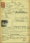 Born 16. 01. 1897 Last residence before deportation: Prague I Address/place of registration in the Protectorate: Prague I, Krocínova 3 Transport Au 1, no. 423 (15. 05. 1942, Prague -> Terezín) Transport Ay, no. 669 (17. 05. 1942, Terezín -> Lublin) Murdered